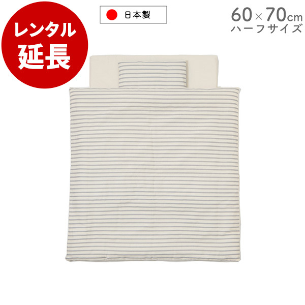 レンタル延長:グレーボーダー ダブルガーゼ 洗える組ふとん 5点セット ハーフサイズ ベビー布団セット 日本製