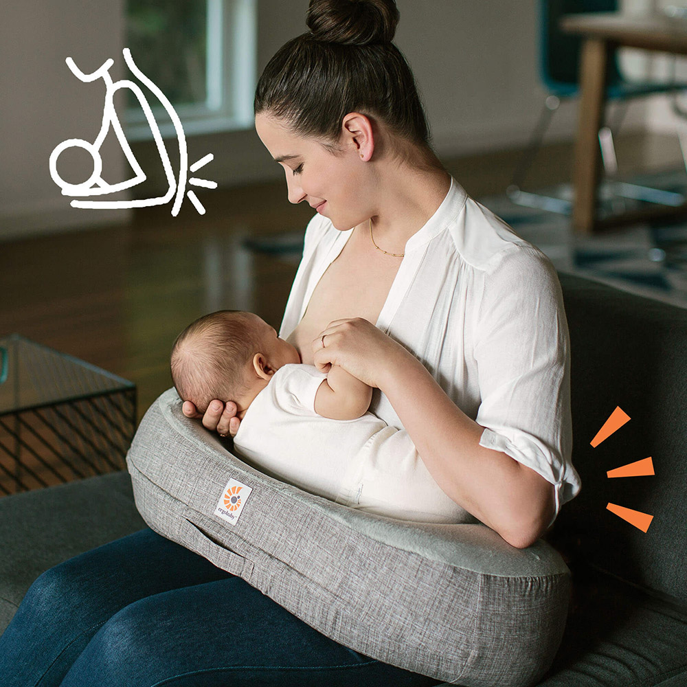 お子さまの頭が沈み込まずに支えられるウレタンフォームは、授乳に適した"高さ"と"固さ"をキープし、ママの腰や背中への負荷が少なく授乳できます。