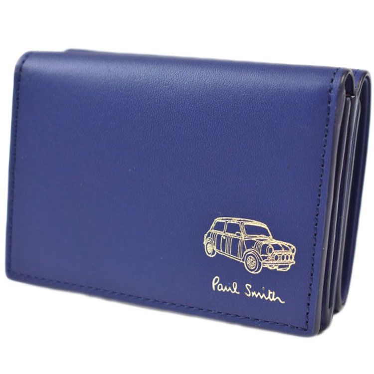 財布 メンズ 三つ折り ポールスミス ミニエンボス 専用箱付 青 ブルー 男性 紳士 本革 コンパクト レザー