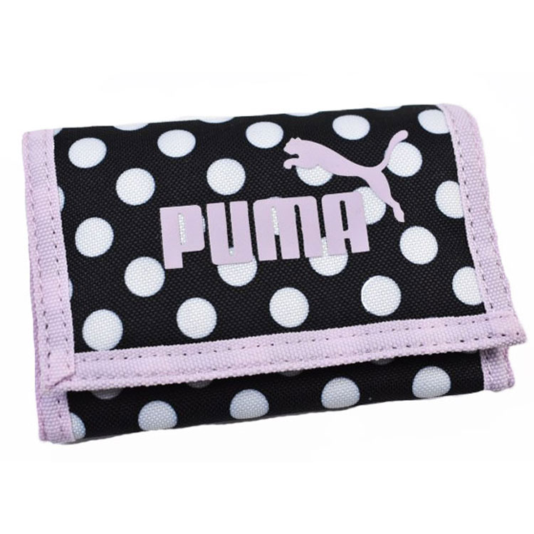 プーマ 財布 三つ折り キッズ 女の子 ブランド PUMA フェイズ AOP ウォレット ブラック ポルカドット AOP 小学生 中学生 ジュニア