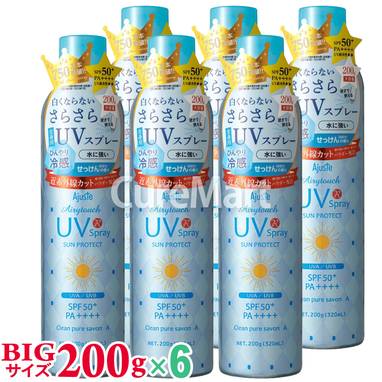 アジャステ エアリータッチ UVスプレー CS せっけんの香り 200g(320mL)◆6本セット SPF50+ PA++++ クリーンピュアシャボン 日本製 Ajuste 日焼け止め 冷感 UV