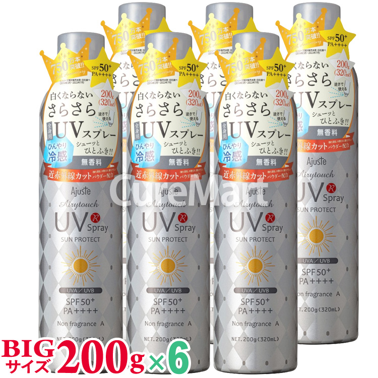 アジャステ エアリータッチ UVスプレー NF 無香料 200g(320mL)◆6本セット SPF50+ PA++++ ノンフレグランス 日本製 Ajuste 日焼け止め 冷感スプレー UVカット