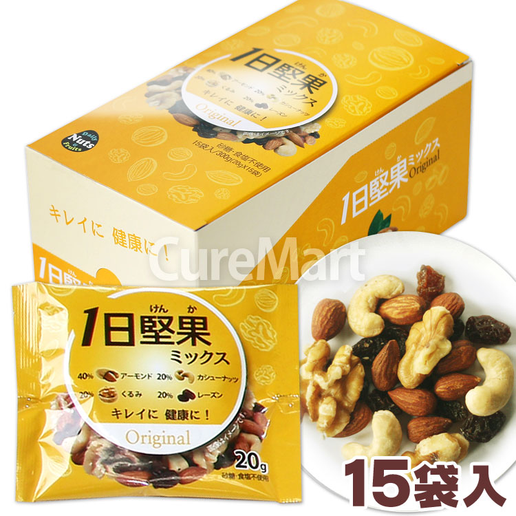 1日堅果 ミックス オリジナル 15袋(300g) 無塩 砂糖不使用 個包装 国内製造3Gケア ドライスイーツ トレイルミックス ミックスナッツ アーモンド くるみ 一日堅果