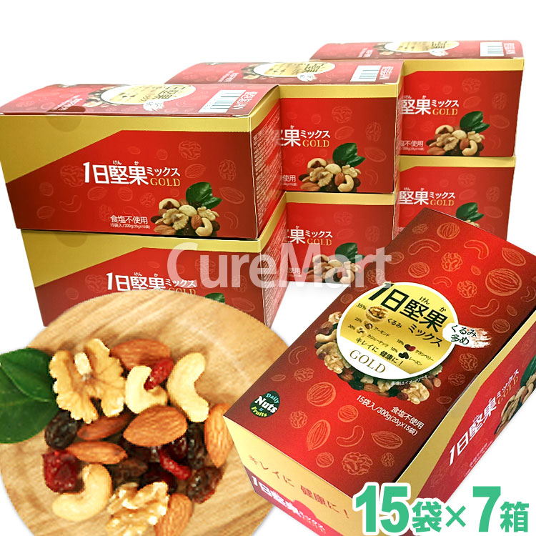 1日堅果 ミックス ゴールド 15袋(300g)◆7箱セット 無塩 個包装 国内製造 3Gケア くるみ ドライフルーツ トレイルミックス ナッツ アーモンド クランベリー 一日