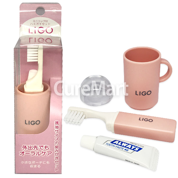 LIGO ミニコップ付 ハミガキセット ピンク LG500P +歯みがき粉4g 池本ブラシ 歯磨きセット 携帯用 歯みがき セット トラベルセット コンパクト 歯ブラシ