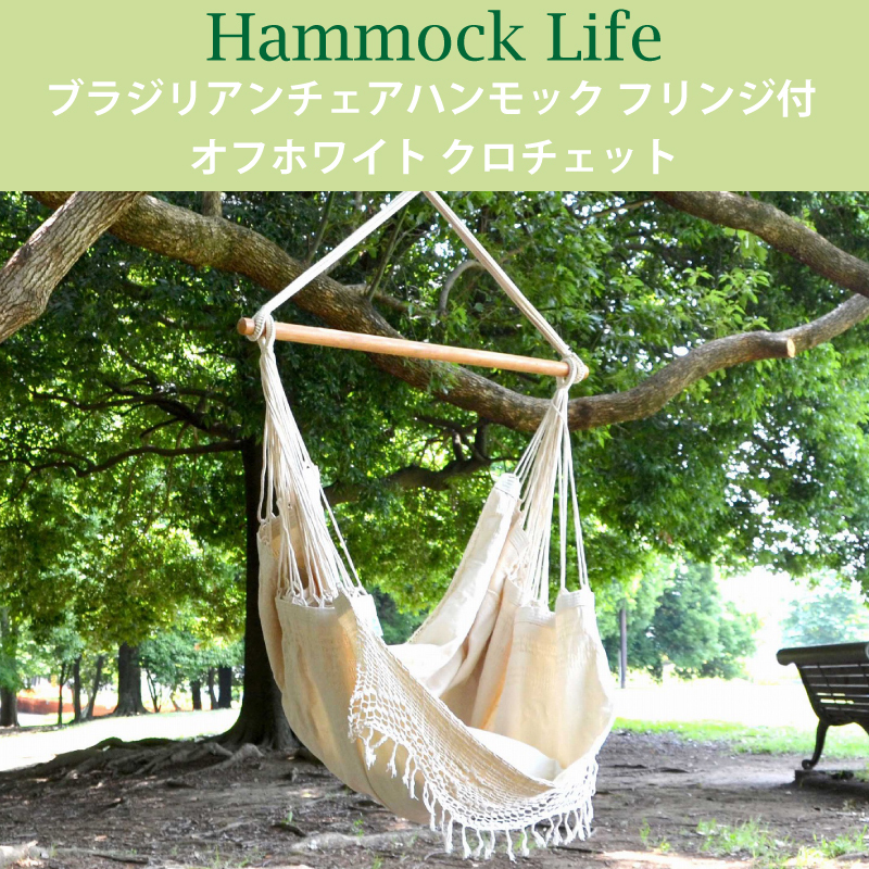 ハンモックライフ 1450 ブラジリアン チェア ハンモック フリンジ付き クロチェット オフホワイト 室内 キャンプ オーガニック おしゃれ