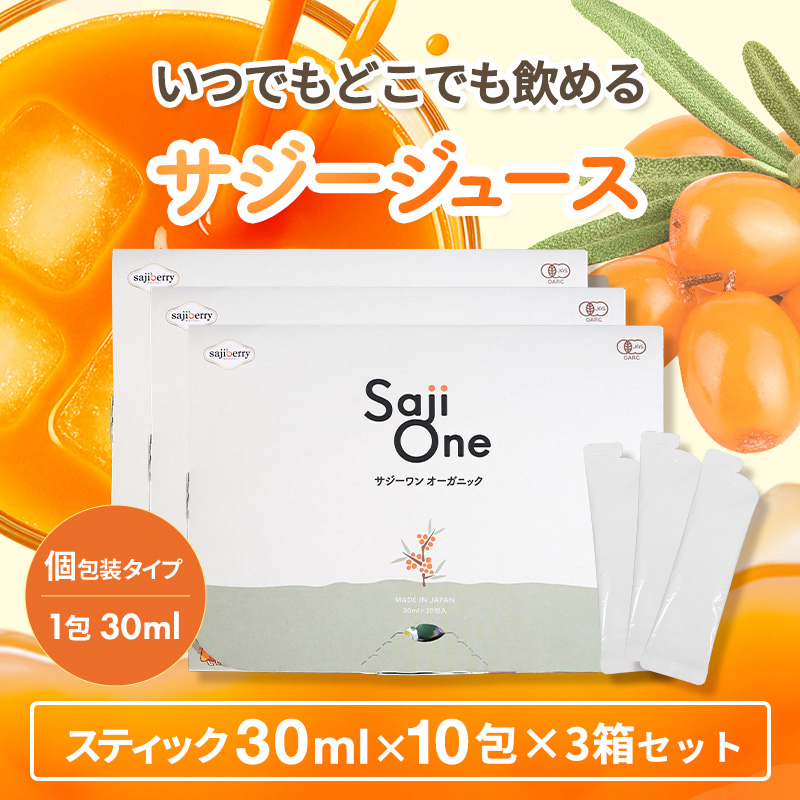 サジージュース 30ml×10本 3箱セット パウチ スティック SajiOneオーガニック 鉄分補給 サジー ビタミン 持ち運び 健康 美容 ポイント利用