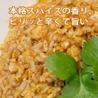 スパイスの香りがとても良い。ピリッとした辛さで食欲全開!炒飯に最適な国産みつひかり米とバスマティライスをブレンド。パラパラっとした本格的なカレー炒飯です。一度食べたらクセになる美味しさ。お子様からお年寄りまでどなたにも喜ばれる味です。