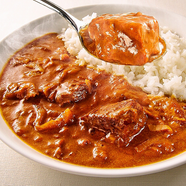 牛肉(国産、オーストラリア産)、玉ねぎ、小麦粉、カレーペースト、ココナッツミルク、ごまペースト、チャツネ、チキンエキス、オニオンパウダー、チーズ、脱脂大豆、調味料(アミノ酸等)、香辛料 (原材料の一部に牛肉、鶏肉、乳成分、小麦、ごま、大豆を含む)