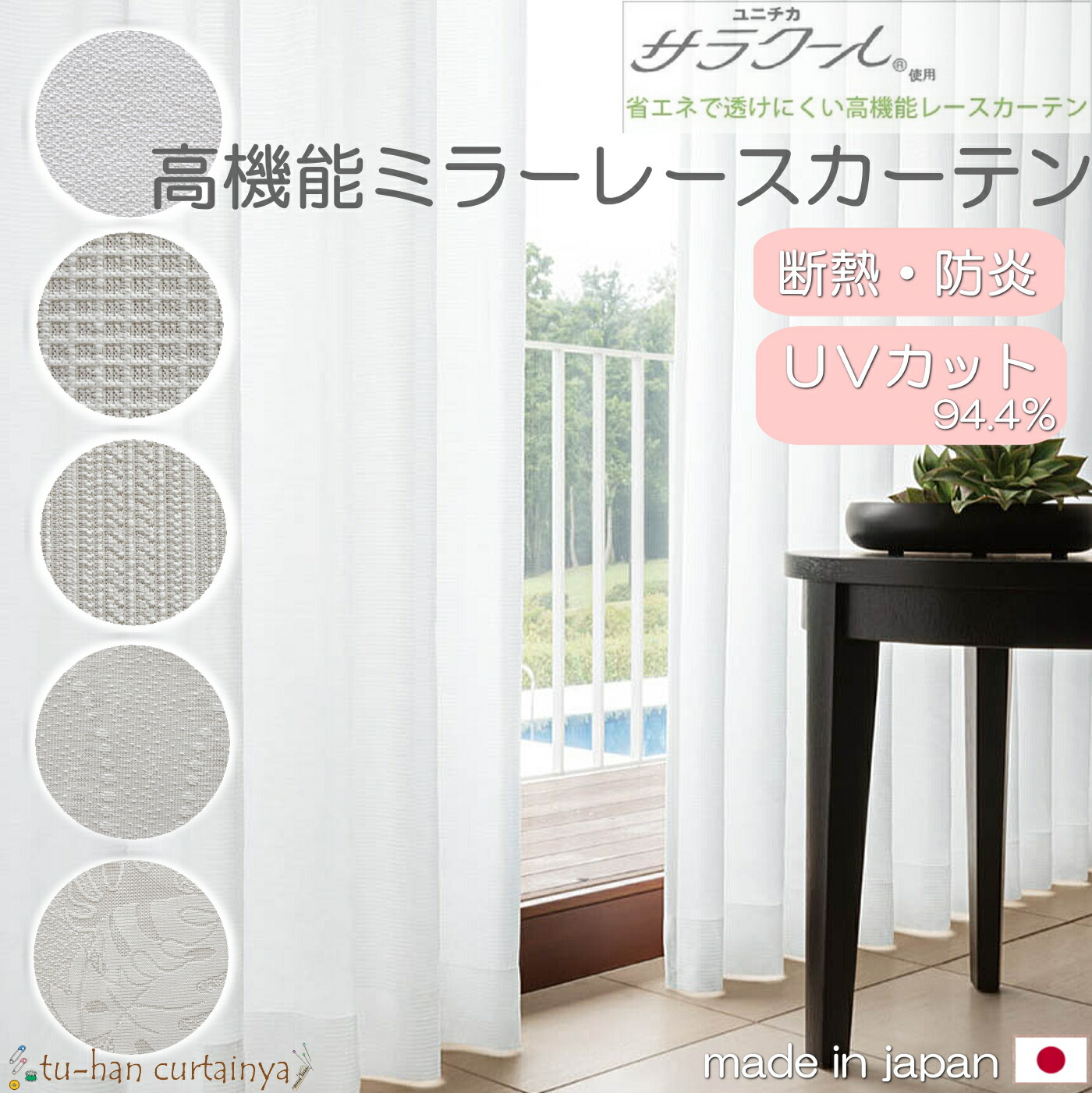 レースカーテン 最強 ミラーレース サラクール 日本製 高機能カーテン 昼夜透けない 防炎カーテン 遮熱 断熱 UVカット率94.4% 超形状記憶加工 節電 見えない