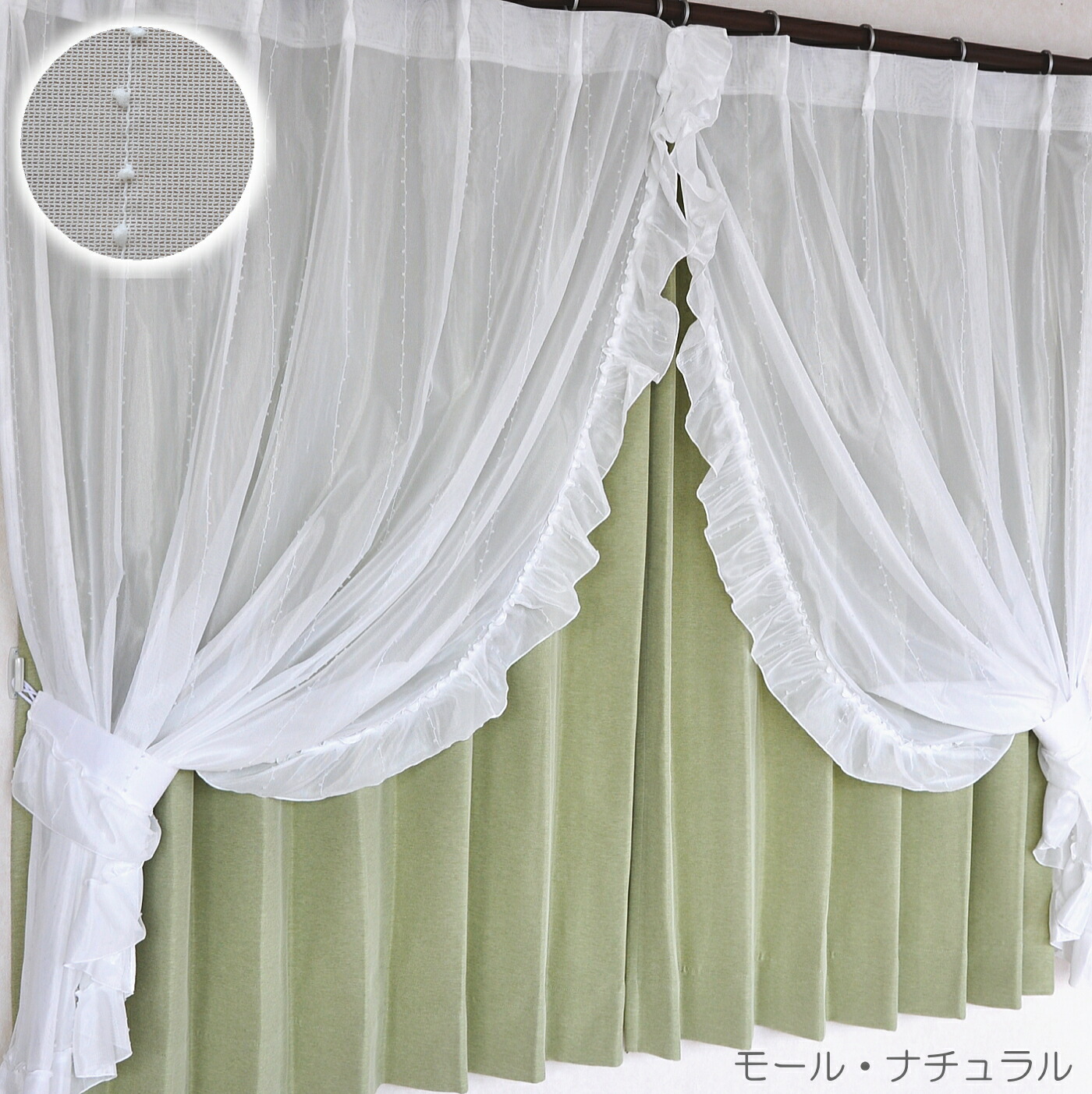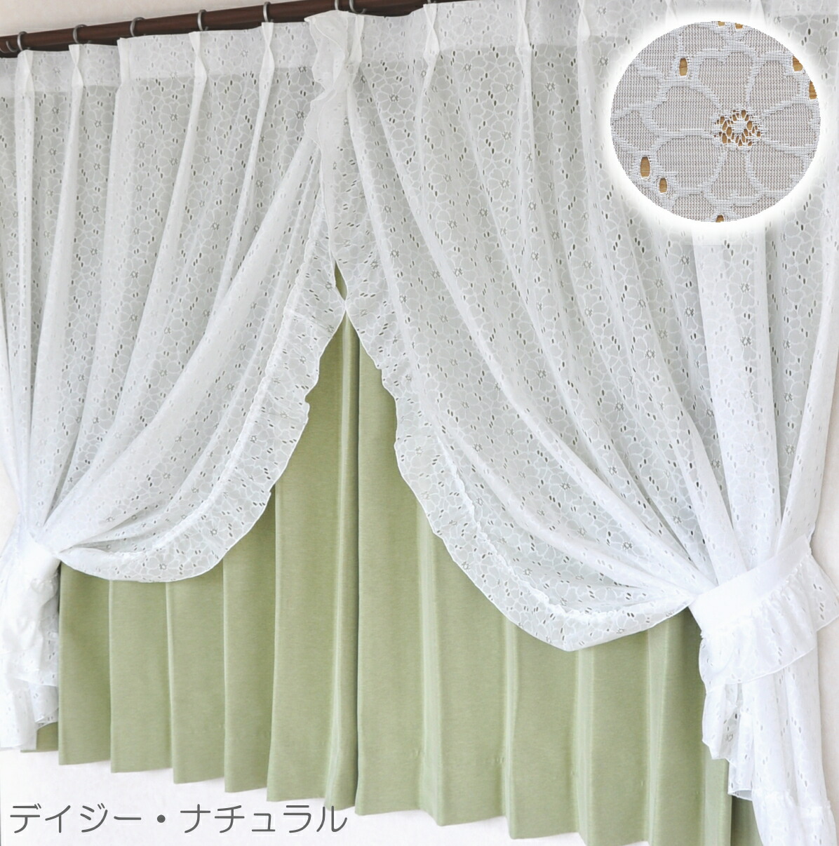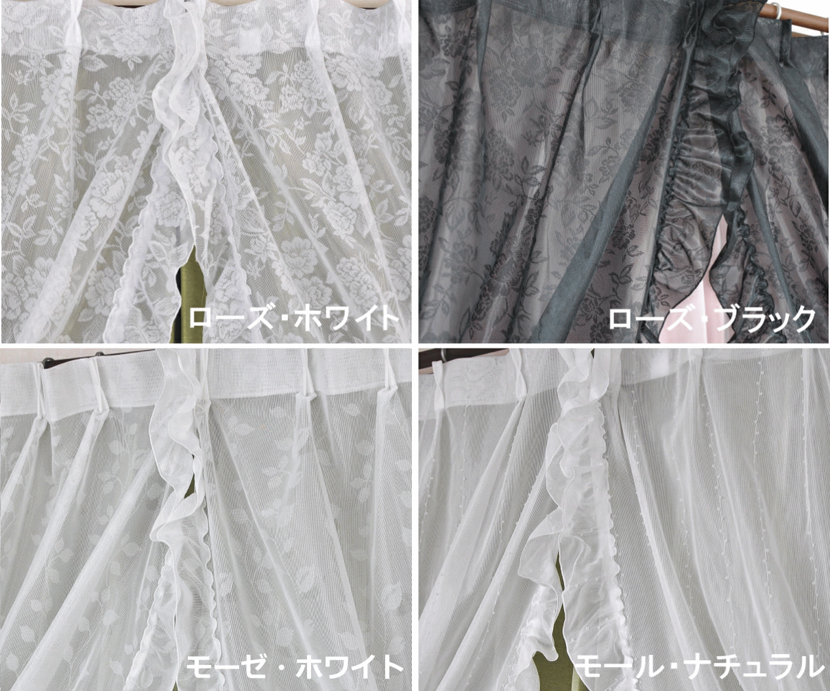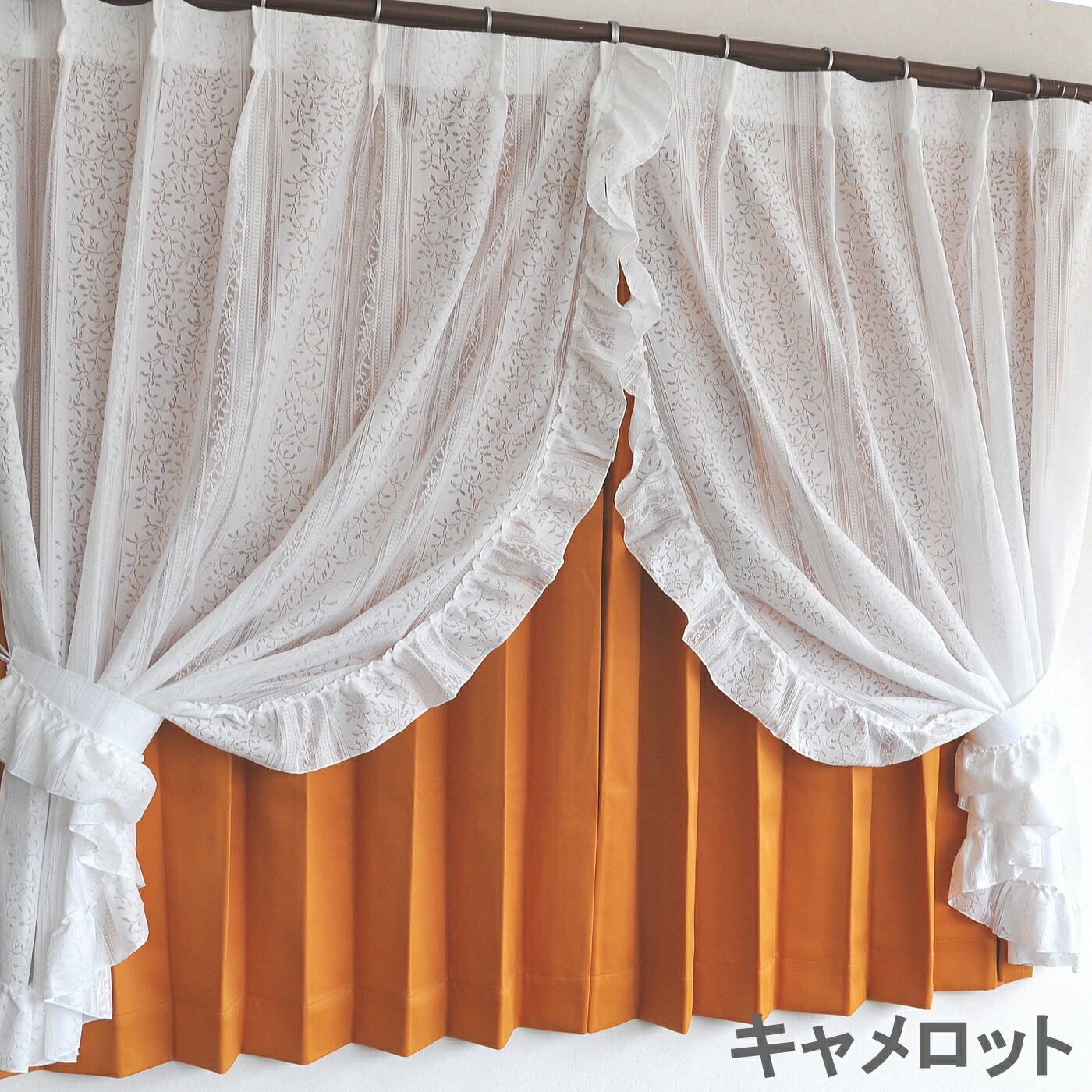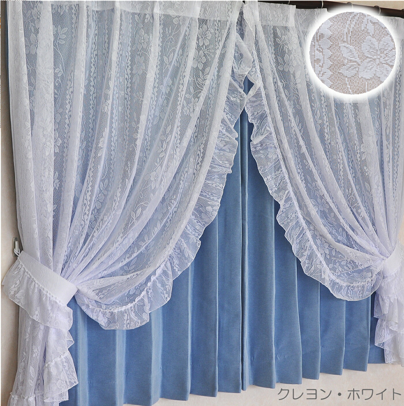 お姫様カーテン 日本製 カーテン2枚組 センタークロスカーテン フリル付 レース UVカット 遮像 花柄 ミラーレース カラーレース 可愛い 出窓
