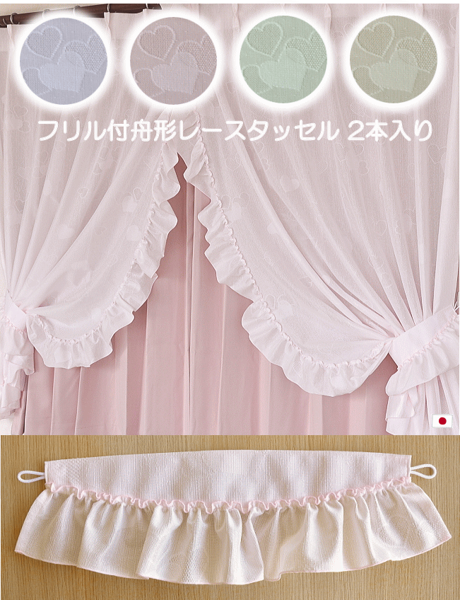 カーテンタッセル(2本入り)お姫様カーテン カーテンタッセル プチハート レース おしゃれ 可愛い 豪華 レースフリル付き ハート柄 ピンク イエロー グリーン