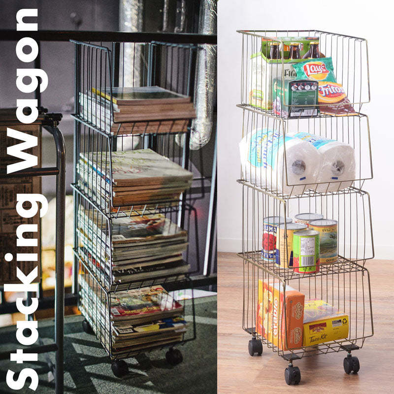シンプルで使い勝手が良いスタッキングワゴン 机の横に置いて書類や雑誌を入れたり、洗面所のタオル入れなど様々なシーンで大活躍です。キャスターも付いていますので移動もラクに行なえます。スタッキングができるので使わないときは重ねてコンパクトに収納ができます。