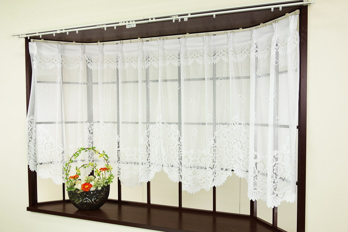 出窓カーテン 出窓用 デザイン おしゃれ かわいい レースカーテン 花柄 ホワイト色 日本製 幅195cm 1枚入 丈105cm ウォッシャブル ナストロ