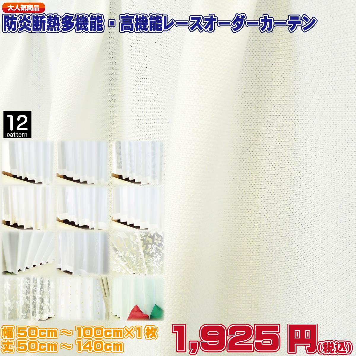 オーダーレースカーテン Aタイプ 防炎 断熱遮熱 遮像 UVカット等に優れた多機能レースカーテン価格表