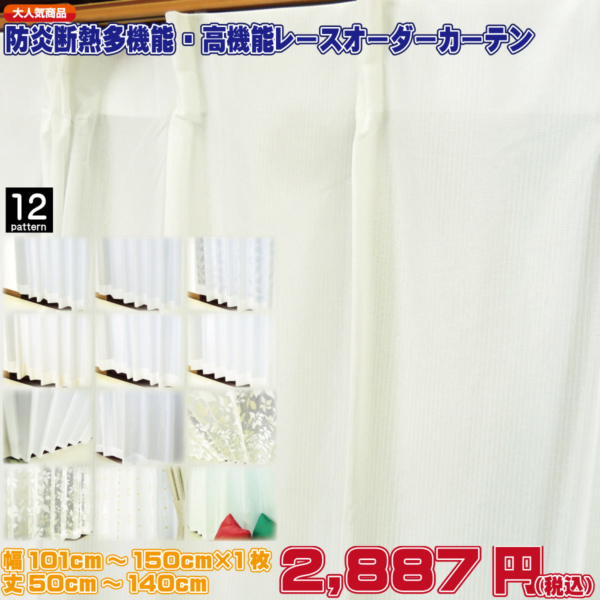 オーダーレースカーテンを形状記憶加工する有料オプションです。