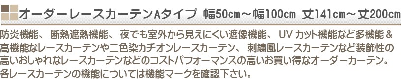 オーダーレースカーテン Aタイプ 防炎 断熱遮熱 遮像 UVカット等に優れた多機能レースカーテン価格表