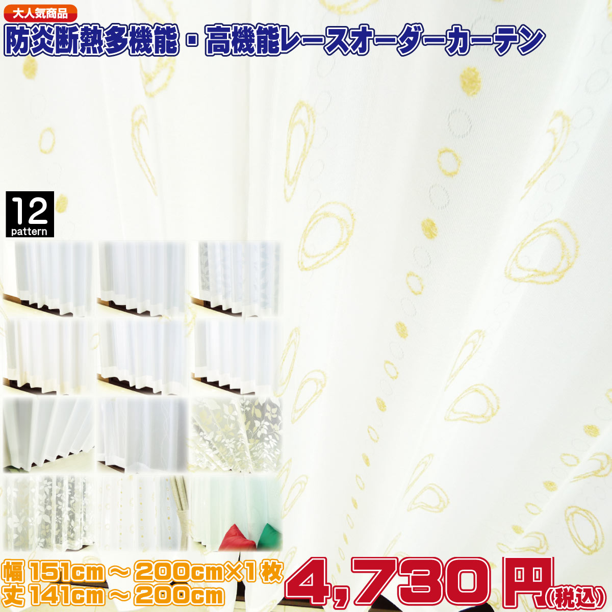レースカーテン 断熱 防炎 花粉キャッチ 透けにくい 遮像 UVカット オーダーカーテン 幅151-200cm 丈141-200cm 1cm単位 日本製