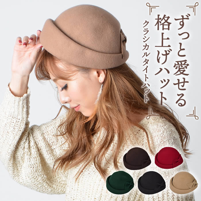 ハット 帽子 帽 ウール クラシカル タイト リボン 紫外線対策 UV対策