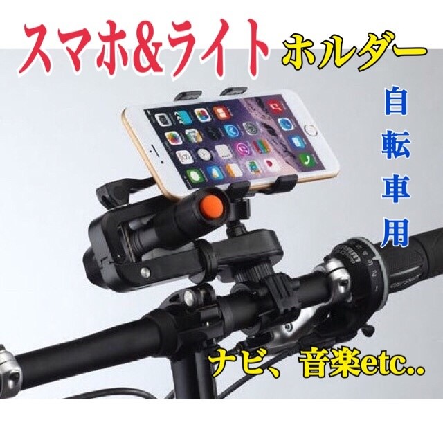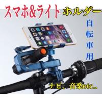 自転車用 スマホホルダー ライトホルダー 一体型 スマホアクセサリー 360° 回転 クリップ式 送料無料