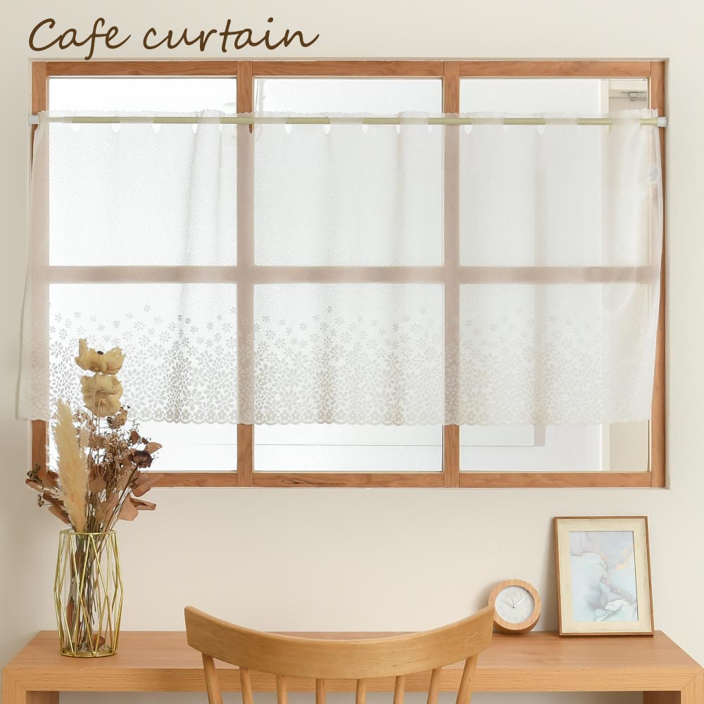 裾部分に柄をあしらったオシャレなカフェレースカーテンです。