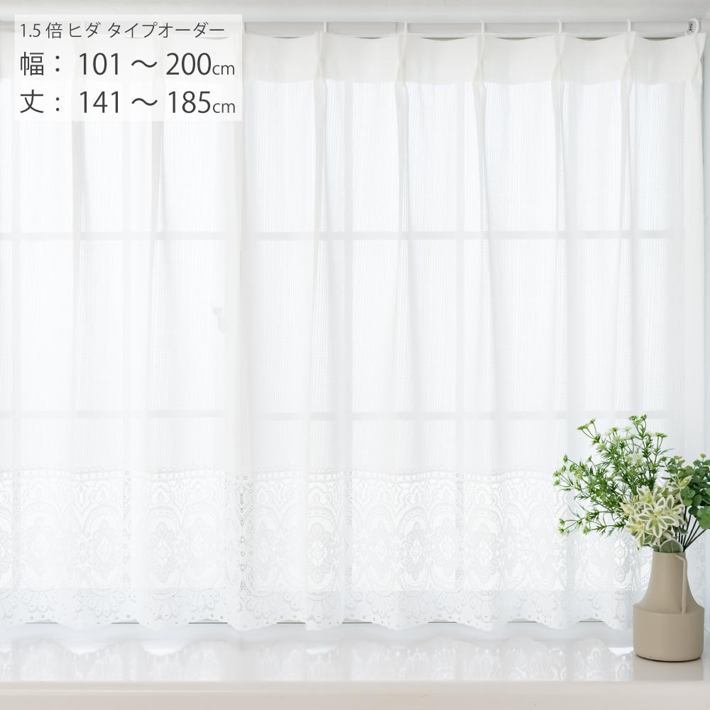 出窓 カーテン レースカーテン オーダー 幅101〜200cm 丈141〜185cm マクラメ調 1.5倍ヒダタイプ 日本製