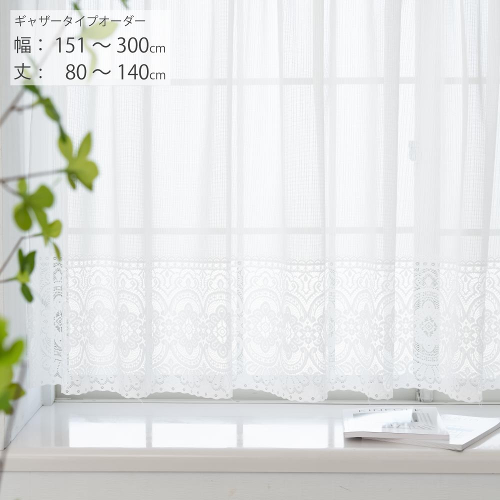 | 出窓、小窓、掃出し窓どの窓にも使えるオーダーレースカーテンです。 生地は横取りなので、幅が大きいサイズでも生地のつなぎ目は入りません。 2枚組ではありませんのでご注意ください。 |