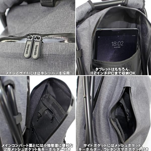 アウトドアで活躍できる雨、雪に強い防水仕様です。帆布(ハンプ)のような風合いが高級感をかもしだすTPUコーティングナイロン素材を採用。主要部分は超音波溶着無縫製仕上げのため表面に縫い目がなく、機能、デザイン面ともにクールな仕上がり。メインコンバートメント、サイドポケットは止水ファスナーを採用のため雨、雪、汚れにかなり強い設計です。イスとバックパックを分離してセパレート使用もできる優れ物。