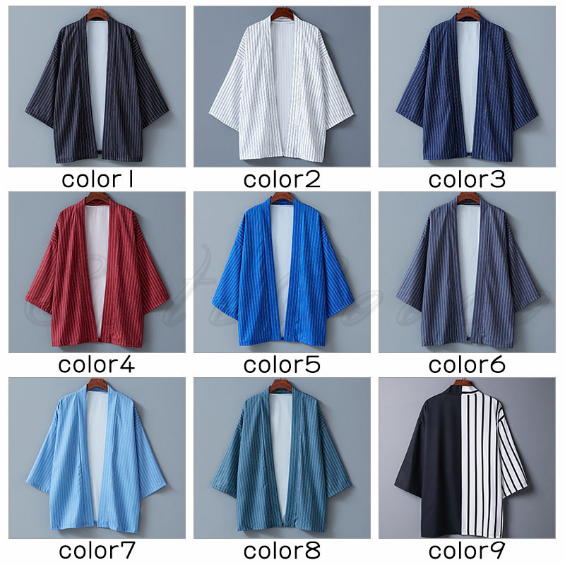 羽織 レディース メンズ 七分袖 ストライプ柄 カーディガン トップス アウター カップル 着物 浴衣 薄手 夏用 花火大会 男女兼用 UVカット きれいめ 送料無料