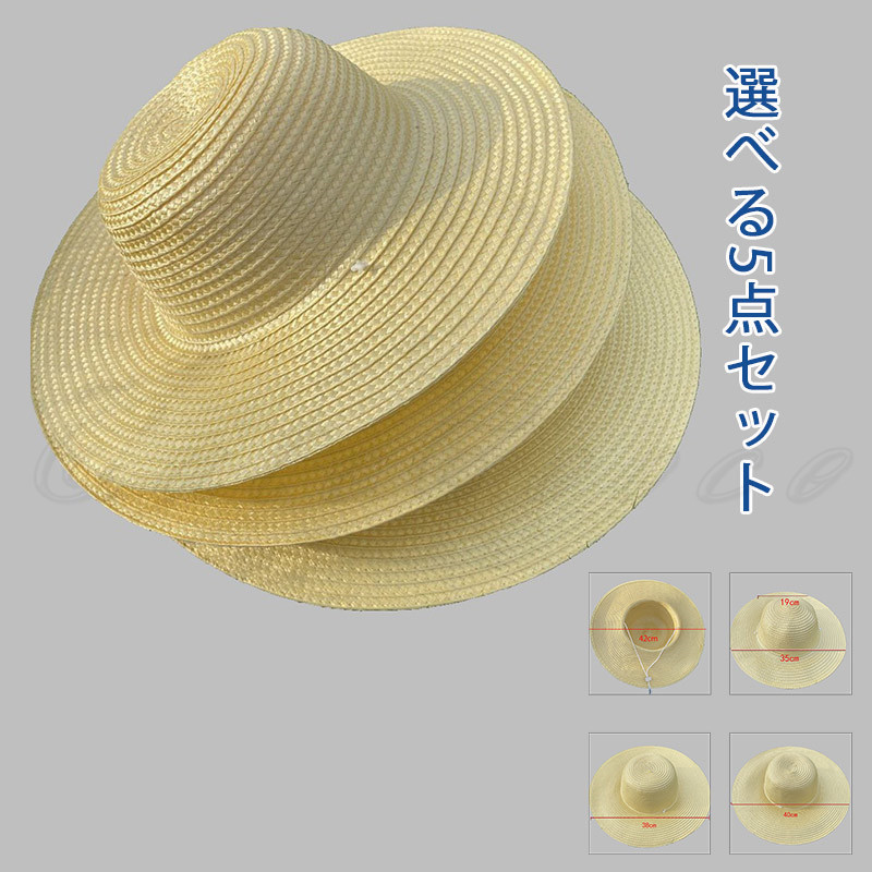 5点セットハット 農作業 ガーデニング 日よけ おしゃれ 紫外線 夏 春 麦わら帽子 麦わら つば広 大きいサイズ 登山 あご紐付き 35cm 38cm 40cm 42cm 送料無料