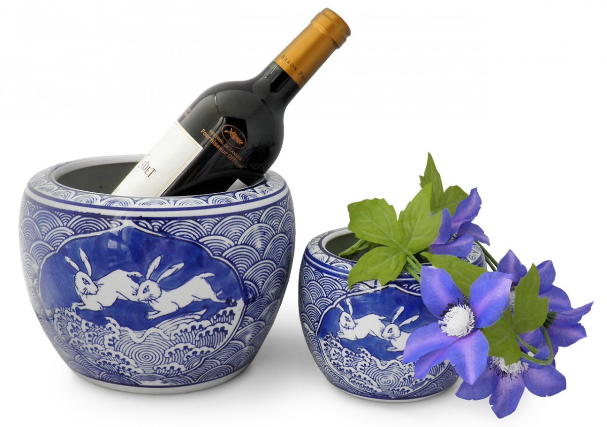 ワインや冷酒のクーラーとしてご利用の際、鉢と酒瓶が強くぶつかりあうと破損の恐れがございますので、ご注意ください。