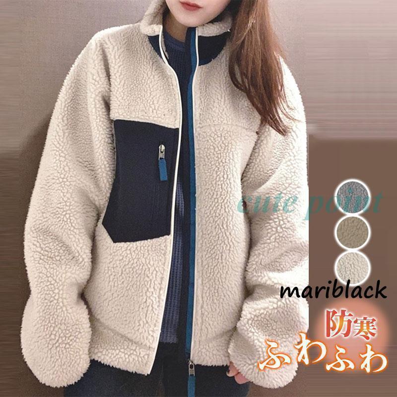 ボアジャケット フリース モコモコ 暖かい アウター 防寒 フリース 可愛い きれい ブルゾン ゆったり 洋服 カジュアル シンプル 大きいサイズ フェミニン 厚手 女性らしい リラックス フリースジャケット レディース ジャケット 冬 ゆったり ジャンパー