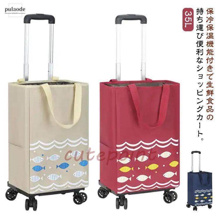 保温 保冷 ショッピングカート 4輪 折りたたみ 軽量 横押し 35L 大容量 ショッピングキャリー 巾着口 撥水加工 防水 自立 買い物カート キャ