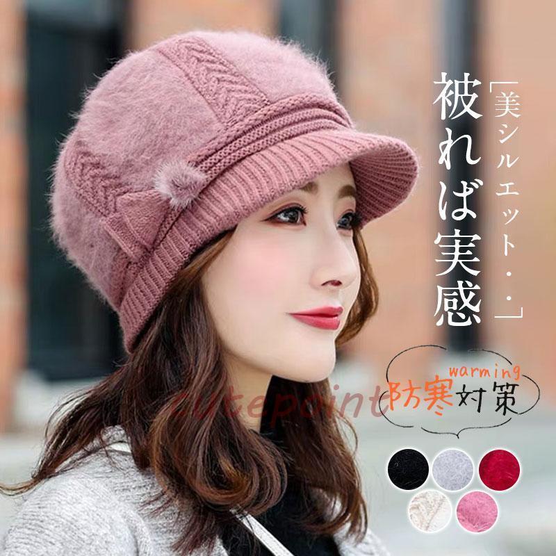 キャスケット レディース 帽子 ニット帽 キャップ ふわふわ 秋 冬 防寒対策 外出用 おしゃれ つば付き 自転車 あったかい 小顔効果 ベレー帽