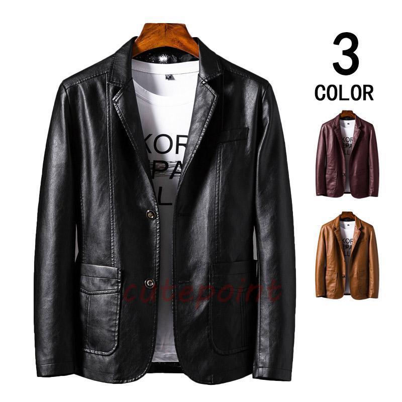 革ジャン メンズ レザージャケット テーラードジャケット 冬 大きいサイズ コーデ 革 FCZY ライダースジャケット 開襟