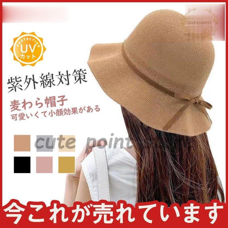 帽子 レディース 麦わら風 UVカット つば広 折りたたみ リボン プレゼント 日焼け止め 可愛い 折り畳み 日除け 遠足 旅行 お出かけ 買い物