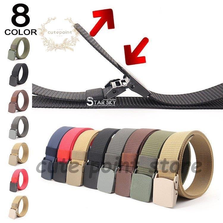 ベルト カジュアル メンズ レディース ナイロン 軽い ガチャベルト 非金属 作業用 穴なし おしゃれ カジュアル 男女兼用 全8色