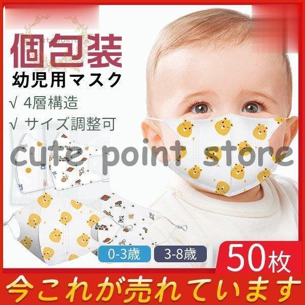 幼児用 マスク 50枚入り 子供用 使い捨て キャラクター 赤ちゃん ベビー 不織布 可愛い 子ども用 4層構造 立体 マスク サイズ調整可 キッズ 0歳-8歳 幼稚園