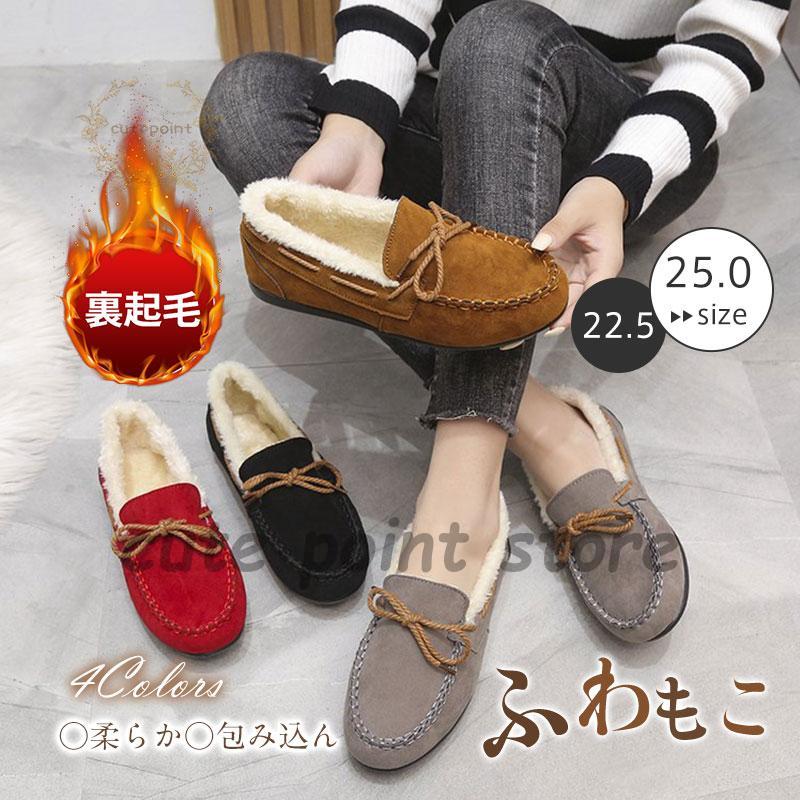 モカシン フラット ぺたんこ もこもこ 裏起毛 シンプル 可愛い 快適 ふかふか 秋冬 美脚 売れ筋 定番 暖かい ムートン ローヒール楽