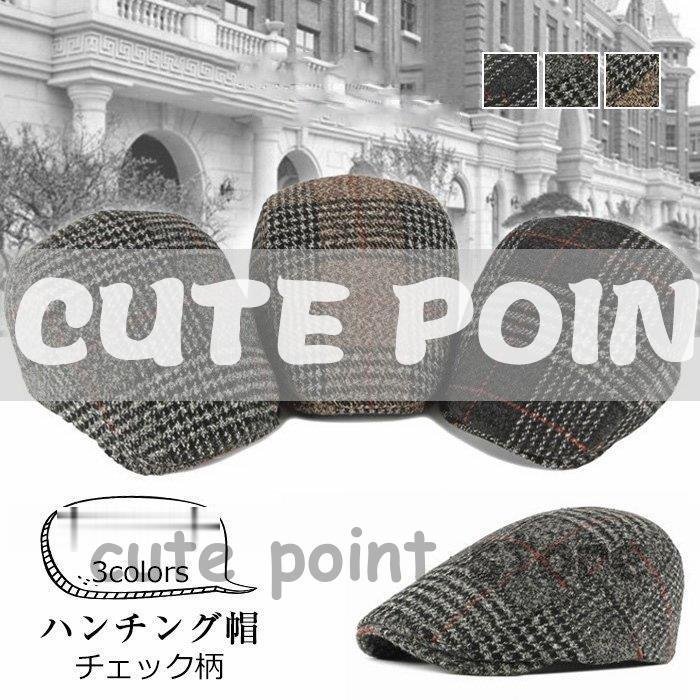 ハンチング帽 メンズ 帽子 チェック柄 カジュアル ファッション アウトドア かっこいい 紳士 男性用 春秋冬 おしゃれな帽子