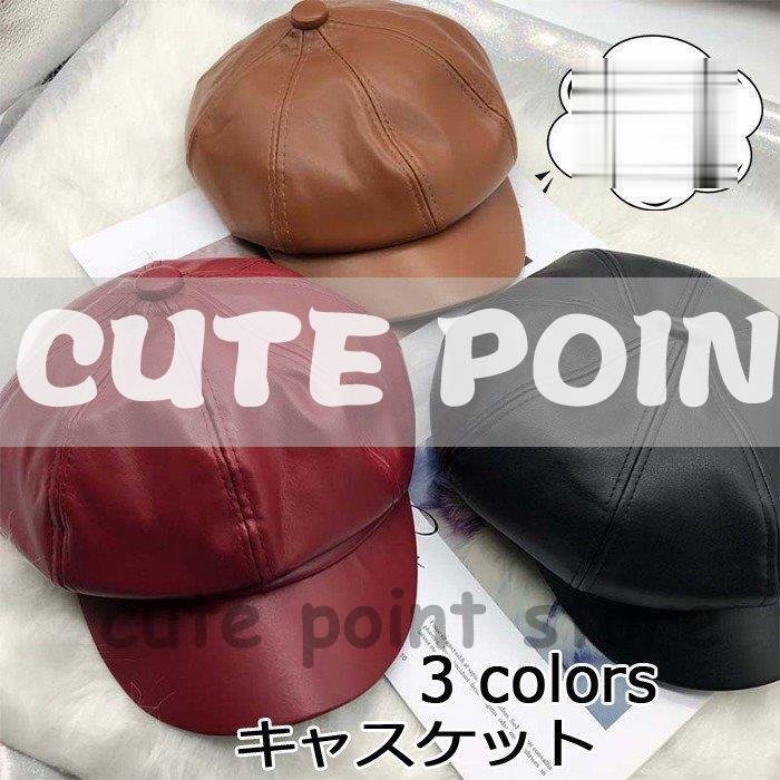 キャスケット レディース 帽子 無地 puレザー キャップ 女性用 つば付き 小顔効果 ハンチング帽 カジュアル きれいめ 秋冬 おしゃれ