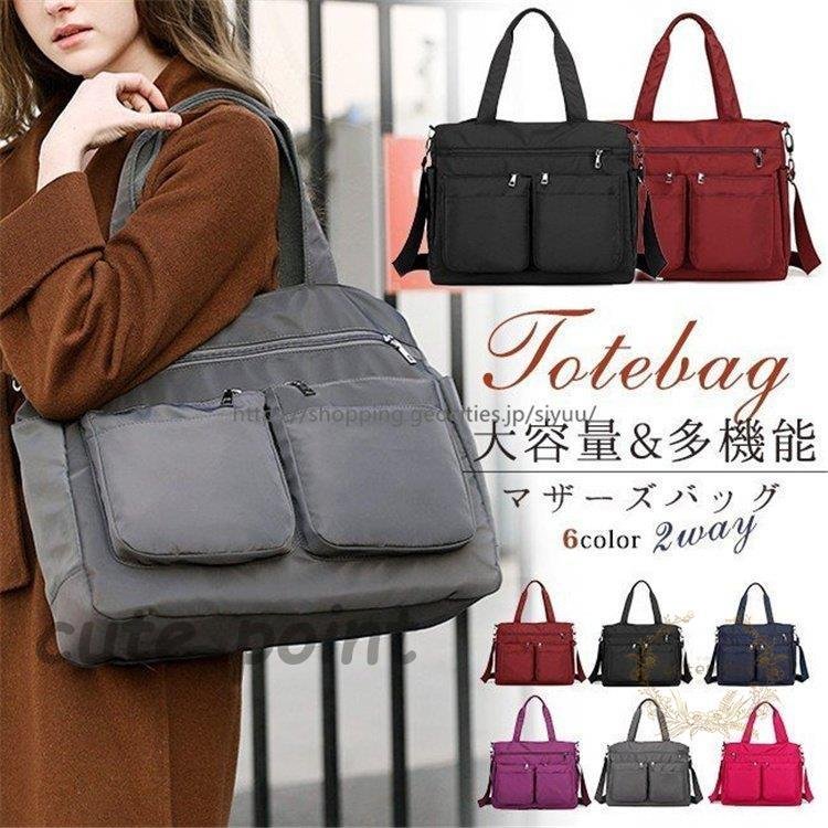 トートバッグ ショルダーバッグ 2way 斜め掛け ナイロン 軽量 撥水 大きめ 大容量 a4サイズ ファスナー付き レディース マザーズバッグ ママバッグ 通勤 旅行 かばん 無地 光沢感 おしゃれ 布 軽い 収納 仕切り ポケット多い 手提げ 肩掛け 多機能 丈夫 シンプル 大人 女性 50代 40代 30代 20代 新品 新作 ナイロンバッグ ナイロントート サブバッグ マザーバッグ 鞄