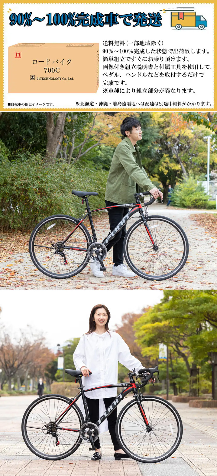 ※全ての自転車は工場出荷時に点検・調整済みですが、運送時の振動などにより調整に狂いが生じる場合があります。