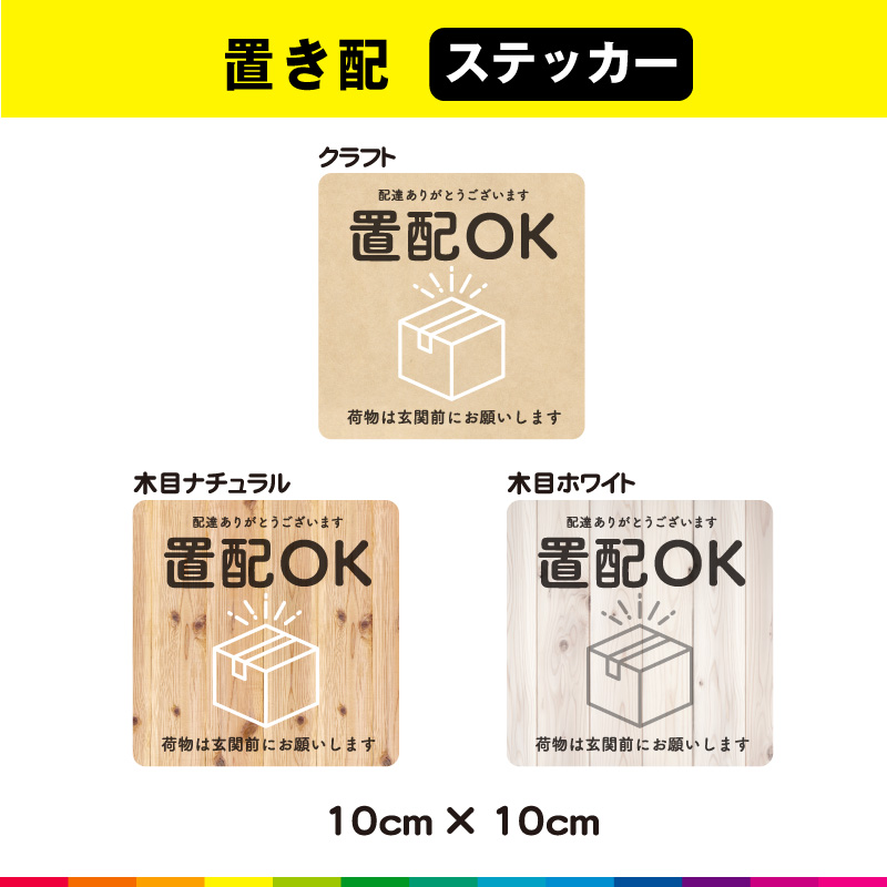 置配 置き配 置配OK 玄関 ステッカー シール お洒落 オシャレ 木目 クラフト ウッド 正方形 UVカットラミネート 耐候性 耐久性 送料無料 全3色