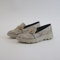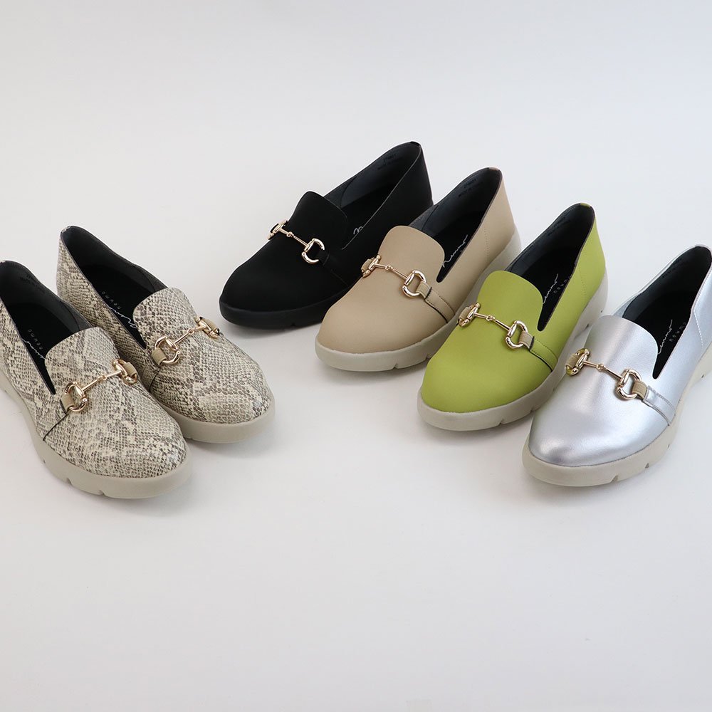 ほっそりフォルムのオペラシューズにシャンパンゴールドのビットで大人カジュアルを格上げ