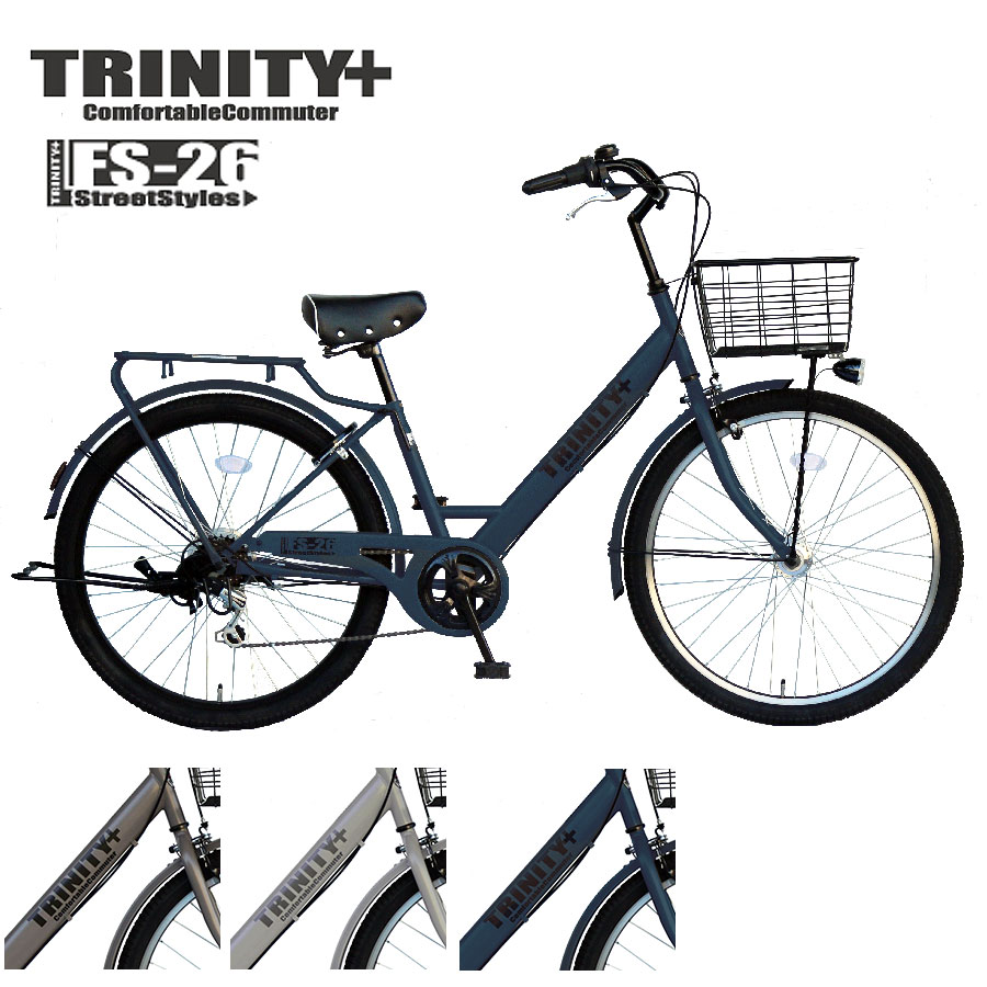 自転車 通勤 通学 26インチ ファミリーサイクル 外装6段変速 TRINITYplus FS26 オートライト 7部組み箱