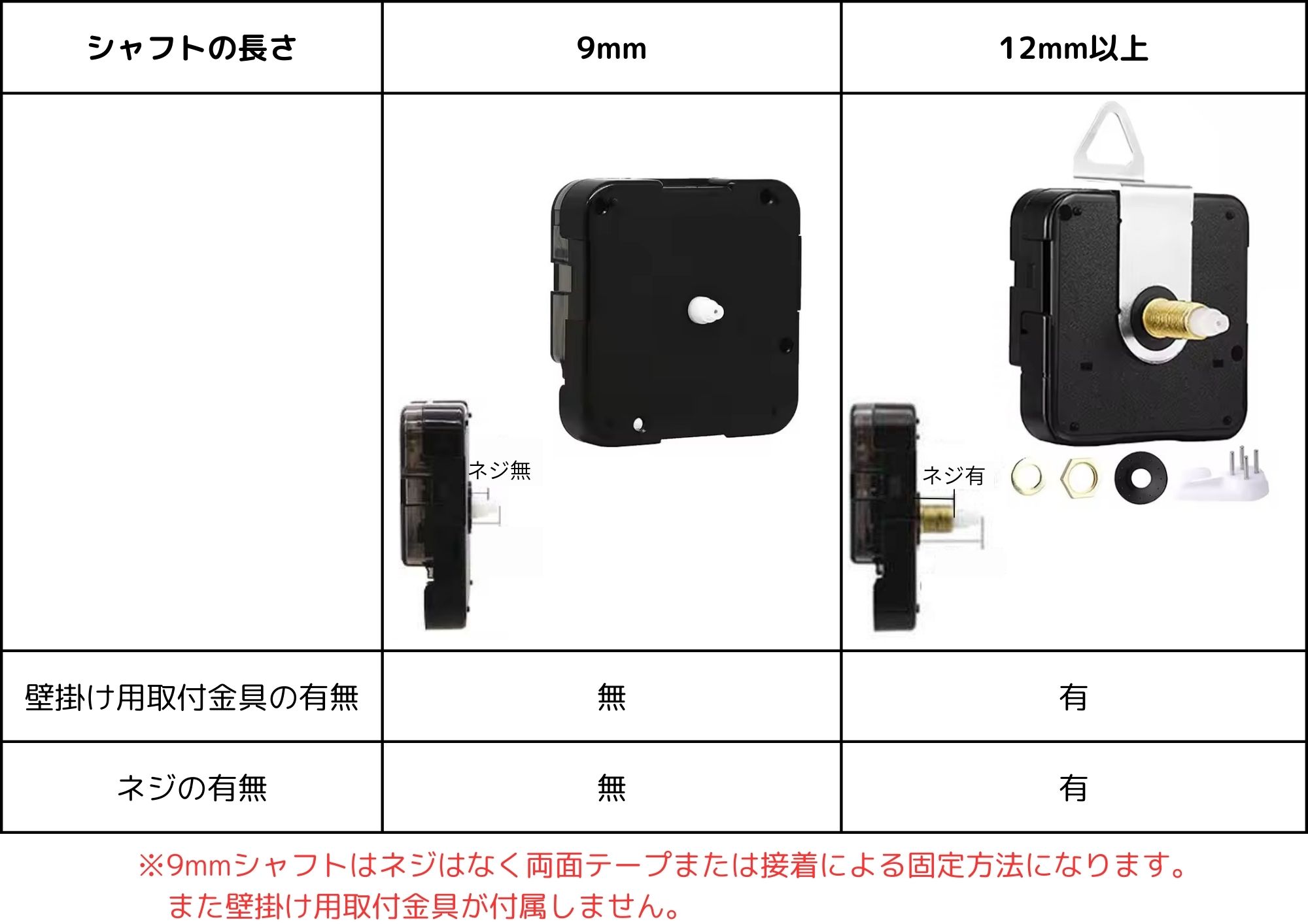 【特徴】:素材の厚さにあわせてムーブメントシャフトの長さを選べます。