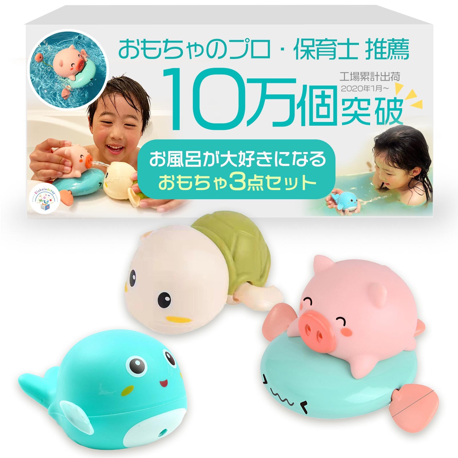 【知育のプロ推薦】お風呂おもちゃ3点セット(豚・カメ・イルカ)1歳向け!出産祝いや誕生日に◎【日本正規品・食品衛生法試験合格】