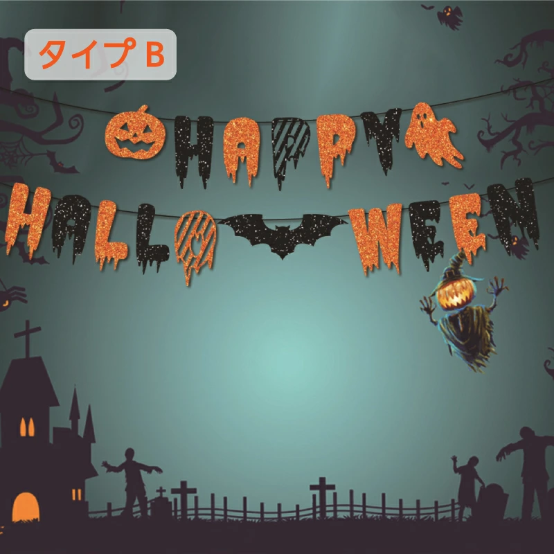 ハロウィン ガーランド 壁飾り 2種 かぼちゃ おばけ 飾り HAPPY HALLOWEEN オーナメント イベント パーティ Cybernet