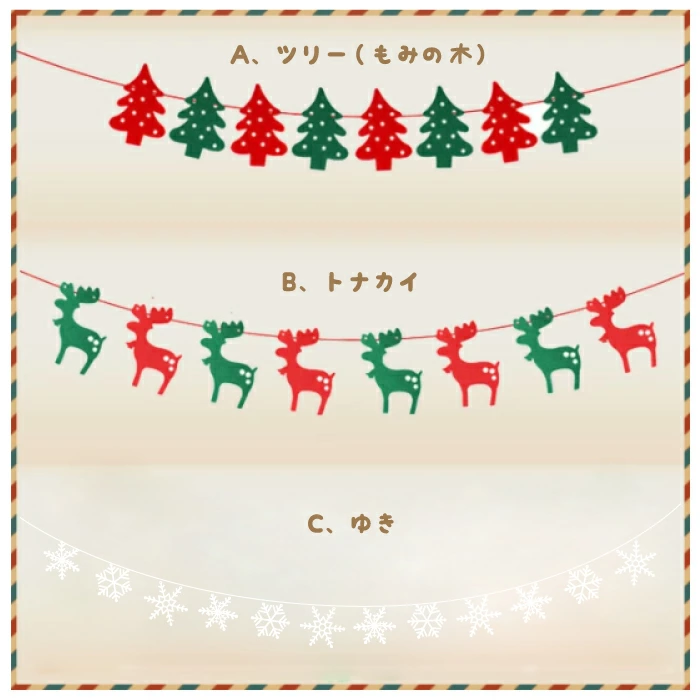 クリスマス ガーランド 3種 壁飾り ツリー 雪 スノー 結晶 トナカイ 飾り オーナメント イベント パーティ Cybernet